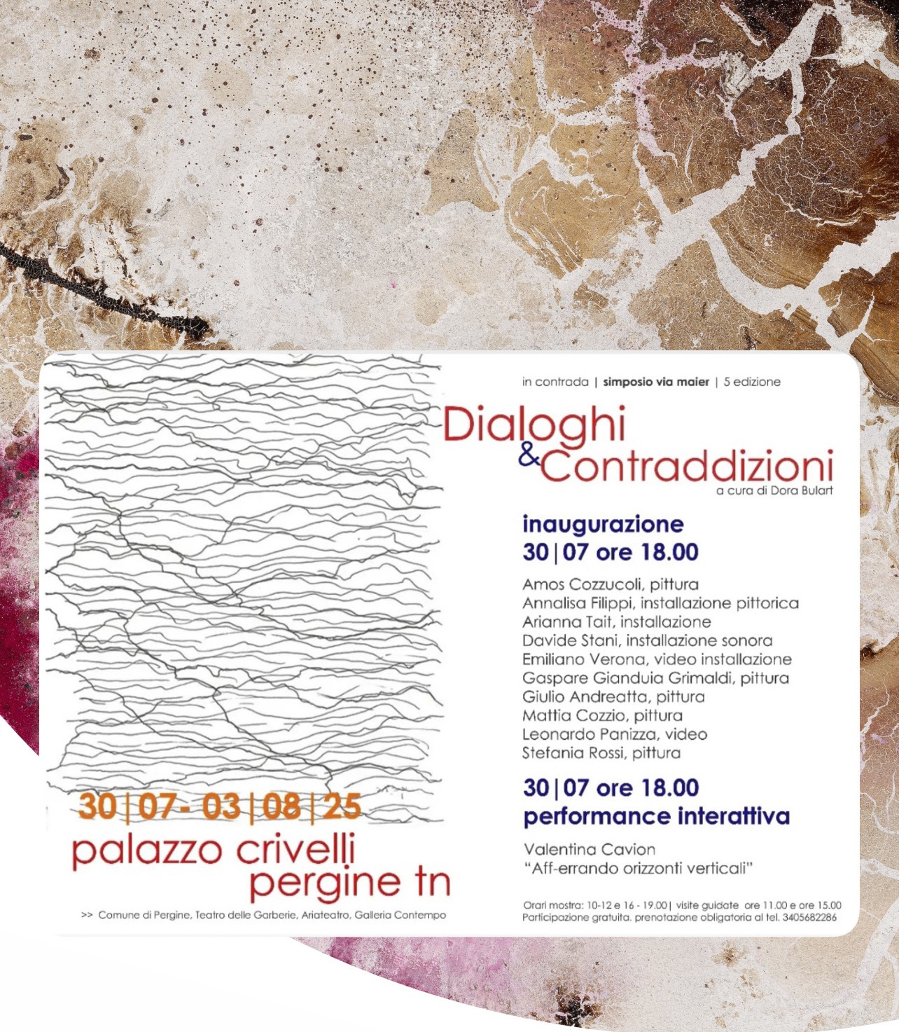 Quinta edizione del Simposio In Contrada a cura di Dora Bulart Galleria Contempo , Comune di Pergine, Teatro delle Garberie, Ariateatro